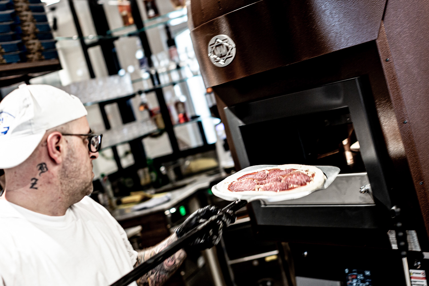 Fior di Latte Mozzarella, Peperoniwurst, Champignons, grüne Peperoni, Oliven 12.0
